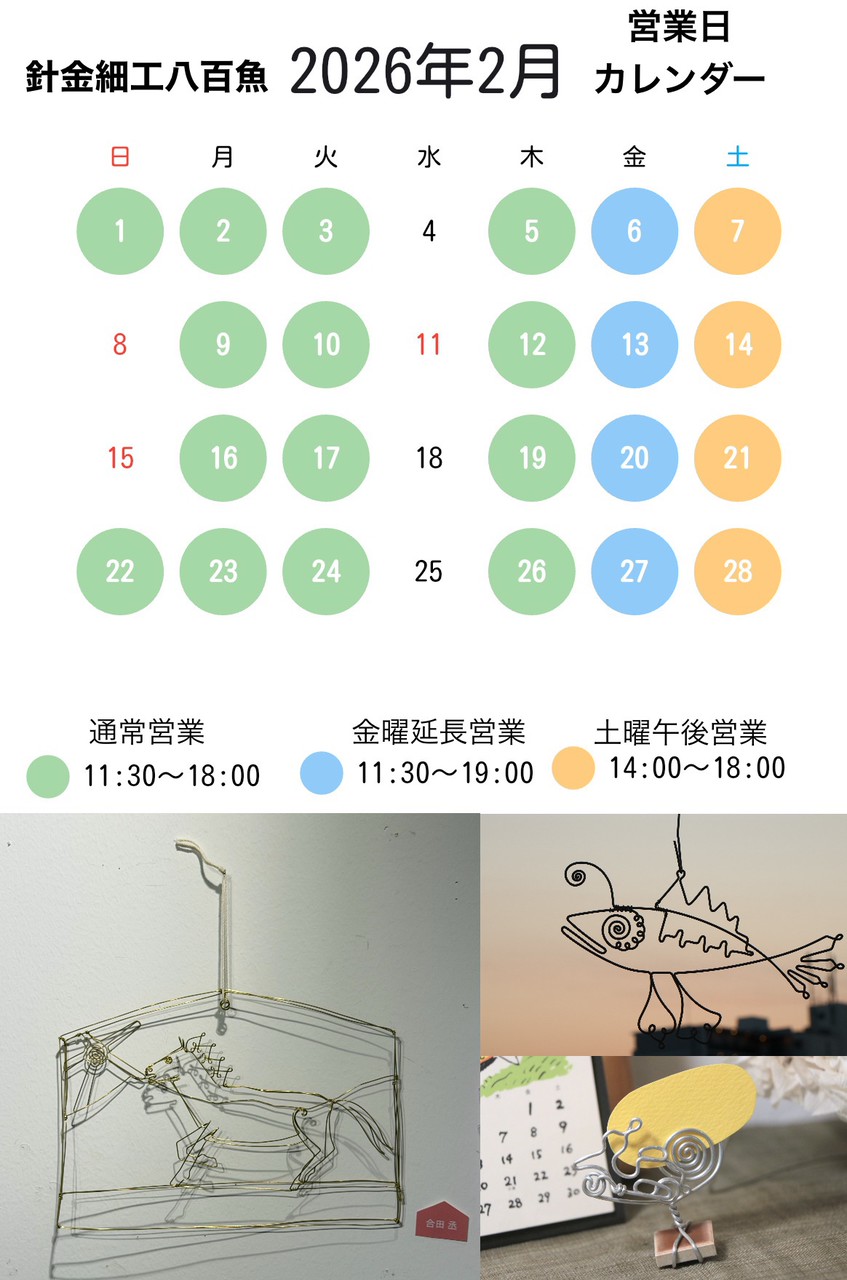 二月の営業日カレンダーです。
